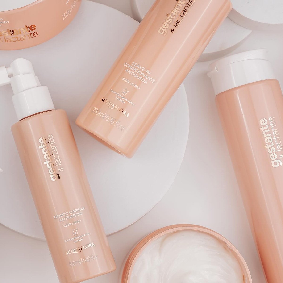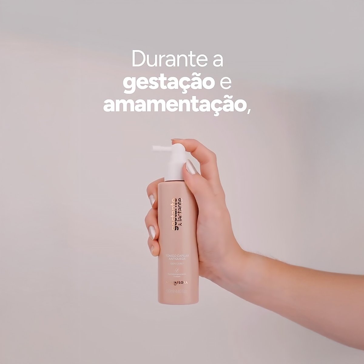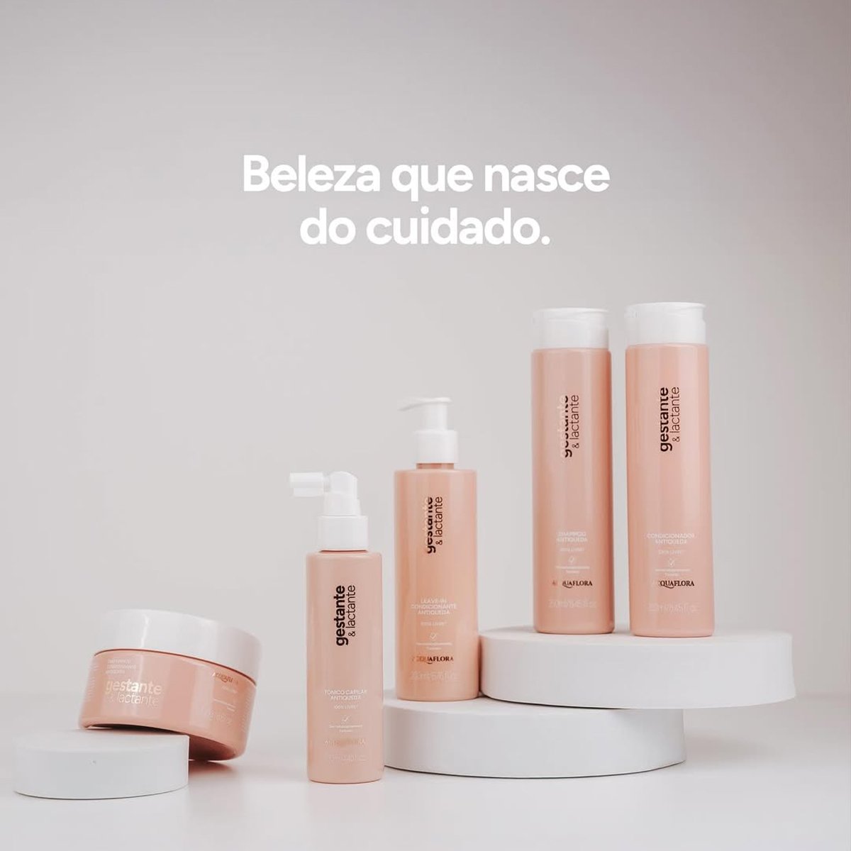 Acquaflora Gestante e Lactante - fortalece os fios e auxilia na reducao da queda capilar Combate a queda, fortalece os fios e estimula o crescimento saudavel. Controla o frizz, devolve brilho e maciez. Sua formula com microalgas do tahiti, extrato de alecrim e aminoacidos atua diretamente na saude capilar, prevenindo a perda de fios comum no pos-parto e promovendo cabelos mais resistentes, hidratados e protegidos. Conselho de Aplicacao Aplique uma pequena quantidade no couro cabeludo, massageando suavemente a regiao para ativar a circulacao sanguinea e melhorar a absorcao. Nao enxague.