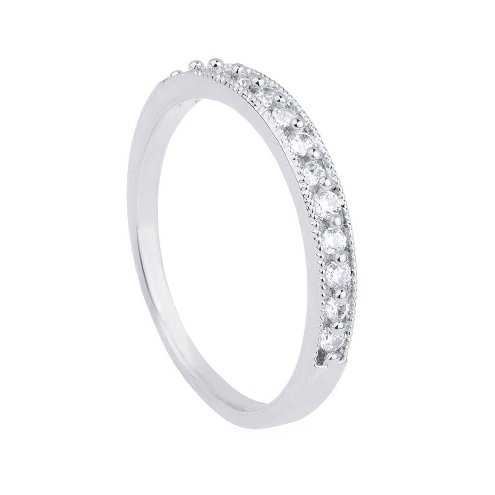Anel Prateado Aparador de Aliança Cravejado de Zircônia