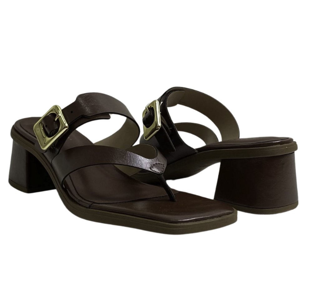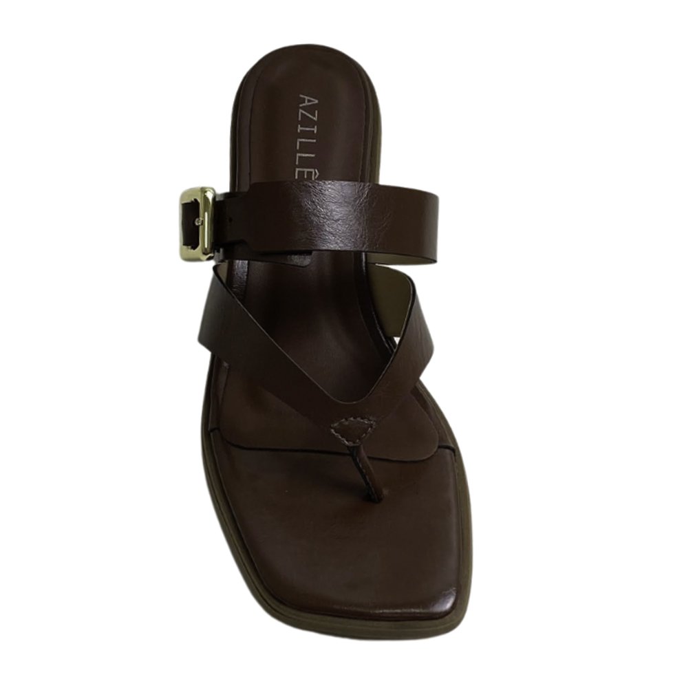 Com design moderno e sofisticado, o tamanco Azile traz elegância ao seu dia a dia. Possui salto bloco médio que garante conforto, tiras largas no cabedal com detalhe de fivela dourada que adiciona charme à peça, além de bico quadrado.
