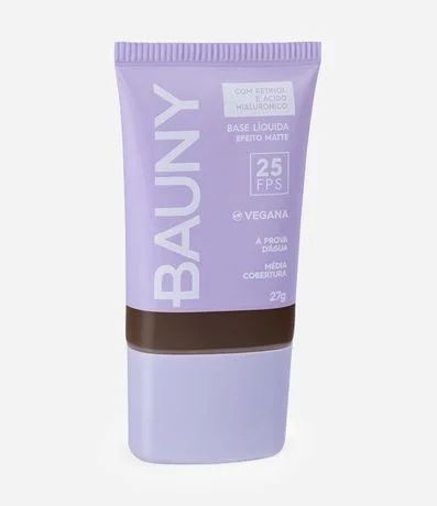 Com um poder de cobertura média que pode ser construído através de camadas, a base da Bauny possui efeito matte, é a prova d'gua e também traz na sua formulação dois ativos de tratamento com eficácia cientificamente comprovada, o ácido hialurônico e retinol.