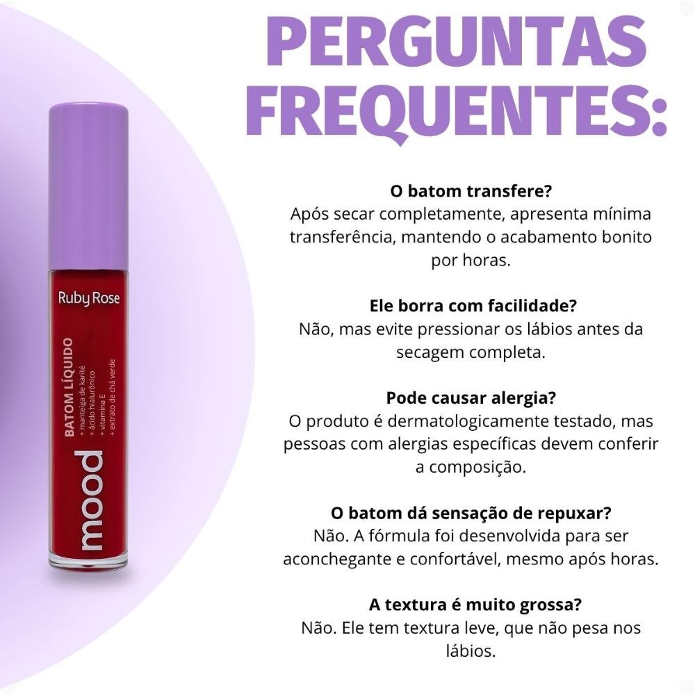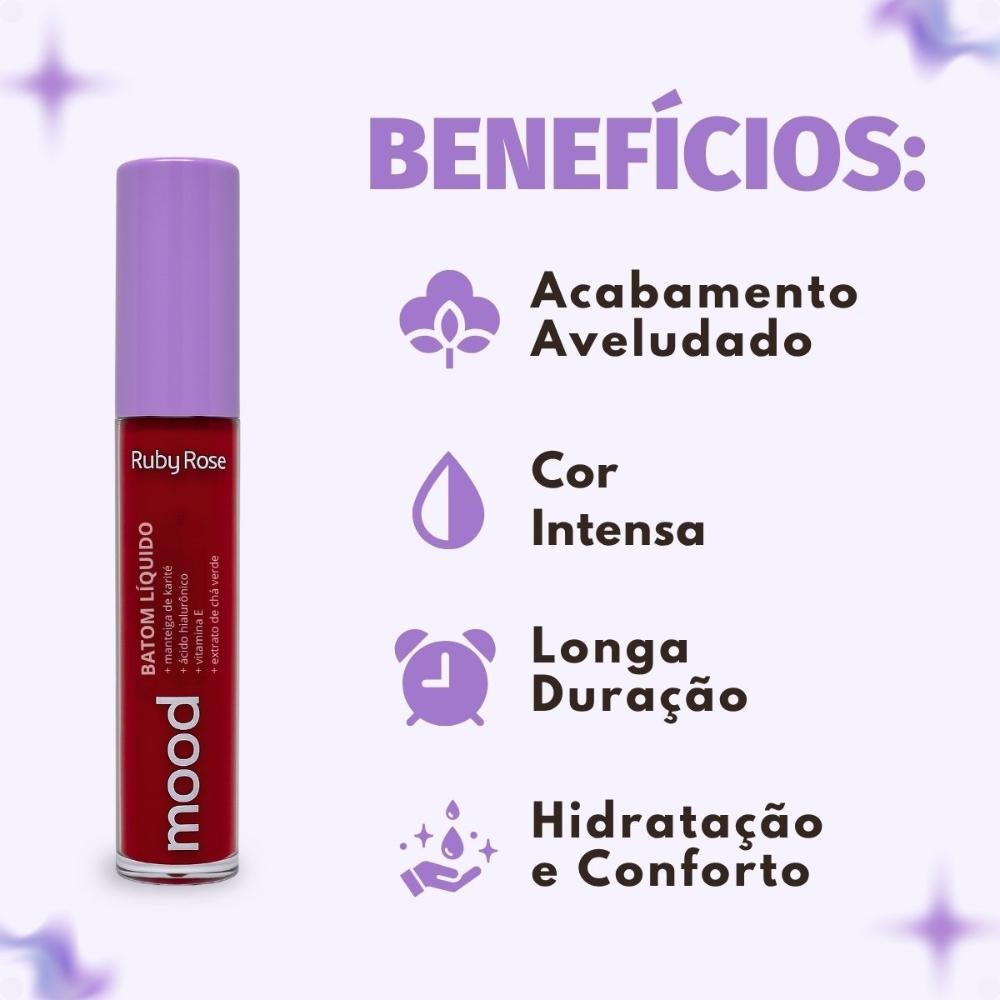 Dê vida aos seus lábios com o Batom Líquido Ruby Rose Mood, a arma secreta para um visual impactante e cheio de personalidade. Imagine seus lábios adornados com uma cor intensa e um acabamento impecável que dura o dia todo. Este batom não apenas realça sua beleza, mas também cuida dos seus lábios, proporcionando uma sensação de conforto e hidratação. Ideal para mulheres que desejam expressar sua individualidade e confiança em cada sorriso.