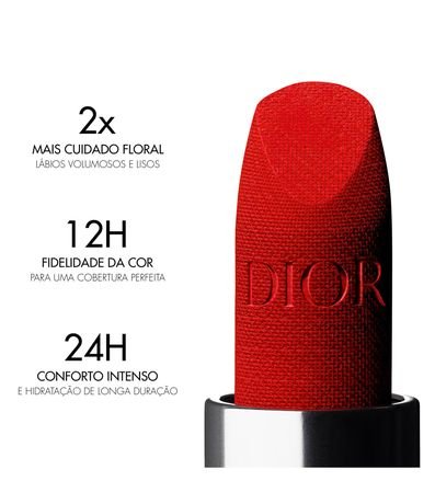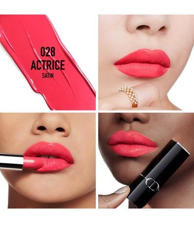 Rouge Dior revela uma gama de tonalidades ainda mais variada para atender a todos os desejos de maquiagem. As tonalidades estão disponíveis em 2 acabamentos: aveludado e acetinado. Matte, suave e agradável nos lábios, o acabamento aveludado deixa os lábios preenchidos e alisados. Luminoso, o acabamento acetinado proporciona uma textura cremosa suave e luminosa.