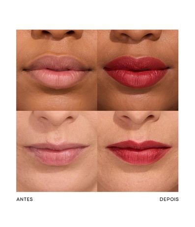 Modo de uso: aplicar diretamente sobre os lábios limpos e secos. Para maior definição, pode ser combinado com lápis de contorno labial.