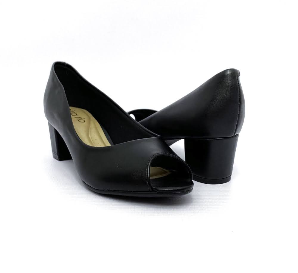 Ref: Peep toe Beira Rio salto, com acabamento pespontado e cabedal liso. Possui salto geométrico de 5cm, palmilha macia e solado com frisos antiderrapantes.