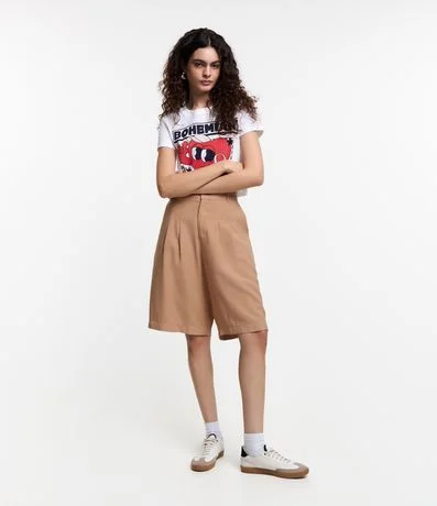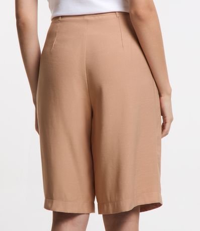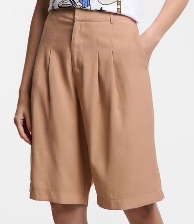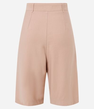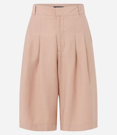 Ref: Bermuda alongada confeccionada em viscose com poliéster, com passantes no cós e pregas frontais. Sem estampa, possui corte alfaiatado e fechamento frontal.