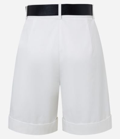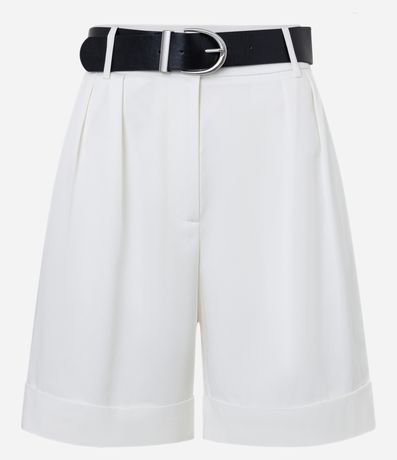 Ref: Bermuda com corte alfaiatada confeccionada em algodão com passantes na cintura, cinto de PU com fivela, pregas e barras dobradas.