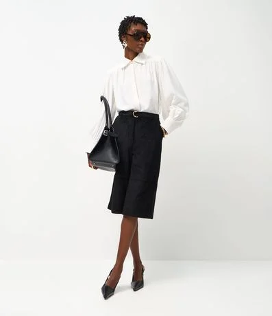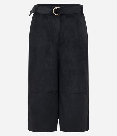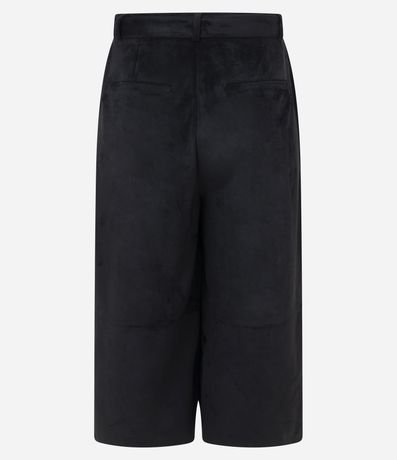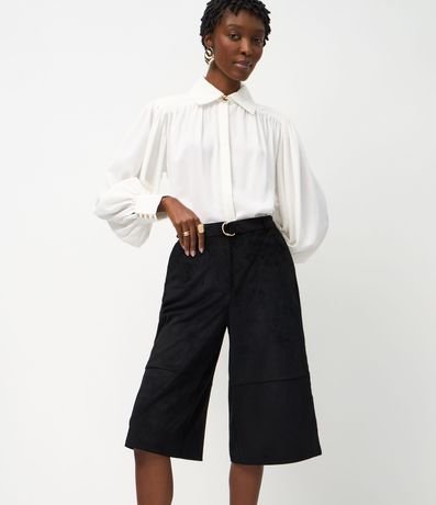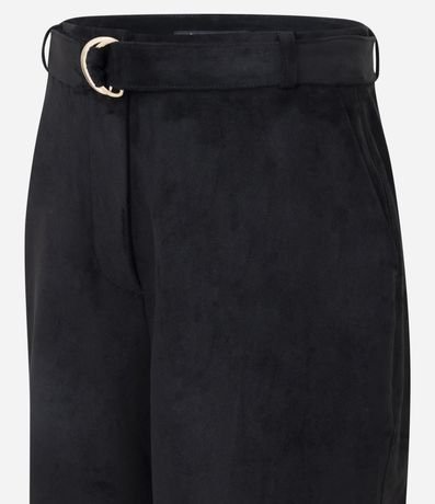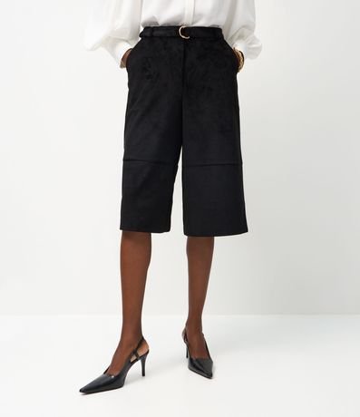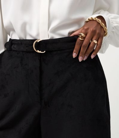 Ref: Bermuda feminina confeccionada em suede, com comprimento alongado e superfície de toque aveludado. Possui faixa aplicada com fivela metálica e bolsos traseiros, mantendo caimento estruturado.