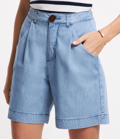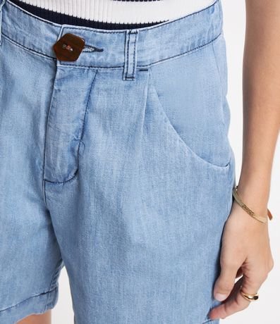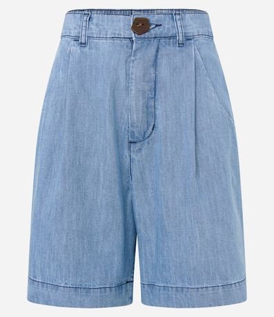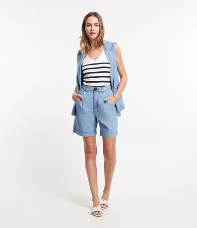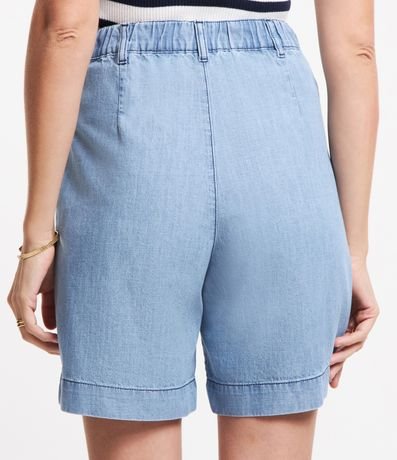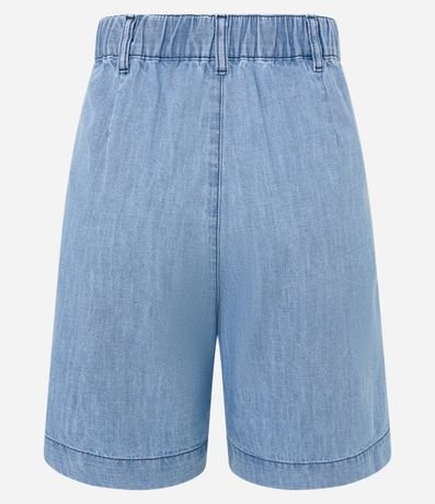 Bermuda Alongada Jeans com Elástico no Cós e Abotoamento Frontal