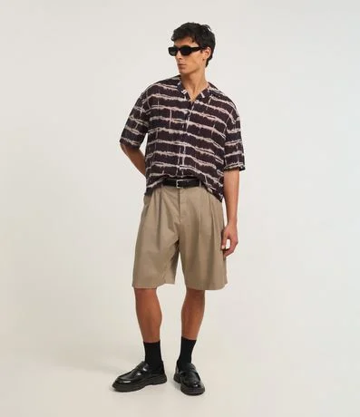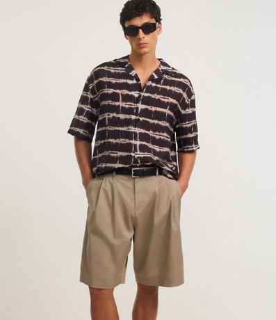 Ref: Bermuda ampla com corte alfaiataria, passantes na cintura, bolsos e pregas.