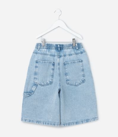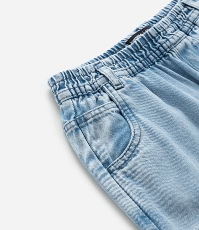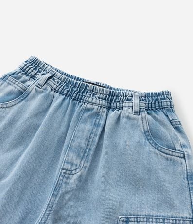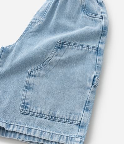 Ref: Bermudinha infantil confeccionada em jeans de material mais sustentável. Possui cós elástico, bolsos, costuras na frontal que imitam bolsos grandes e lavagem marmorizada.