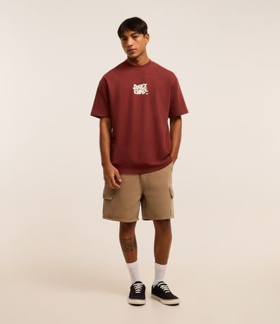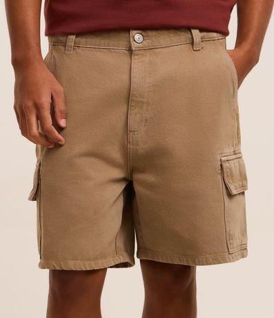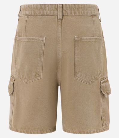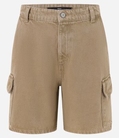 Ref: Bermuda masculina confeccionada em sarja mais sustentável com boas práticas ambientais, no modelo baggy cropped. Possui cós com passante, fechamento tradicional e bolso cargo.