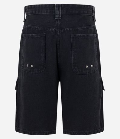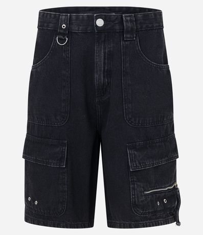 Ref: Bermuda masculina, no modelo baggy, confeccionada em jeans, com cós passante, botões, zíper e diferentes modelos de bolsos.