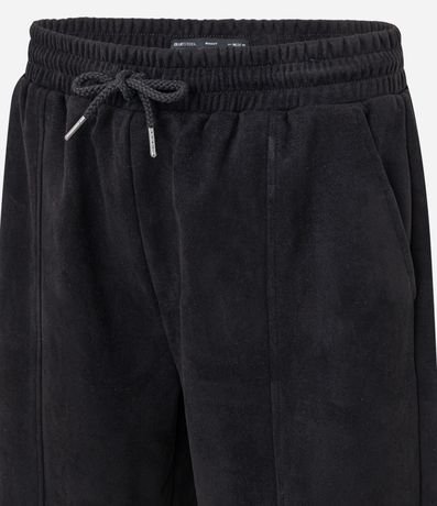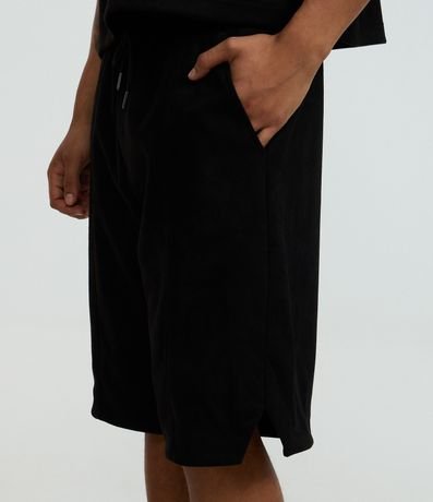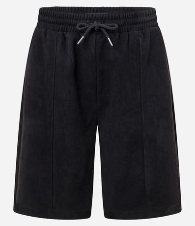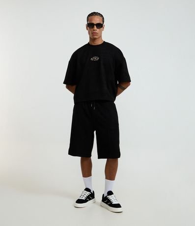 Ref: Bermuda masculina confeccionada em moletom mais sustentável, no modelo baggy. Possui cós elástico, com cordão, bolsos e detalhes de recotes.