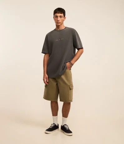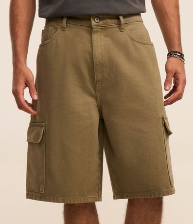 Ref: Bermuda masculina confeccionada em sarja mais sustentável com baixo consumo de água no modelo baggy, possui cós com passante, fechamento tradicional, efeito lavado e bolso cargo.
