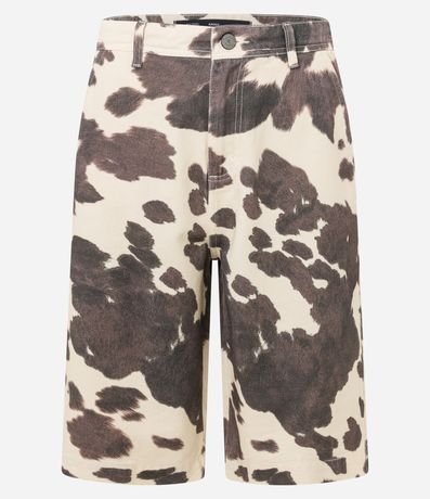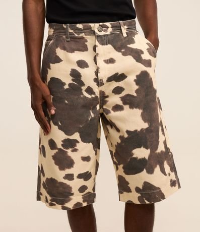 Bermuda Baggy em Sarja com Estampa Animal Print de Vaquinha