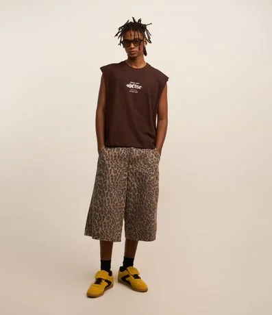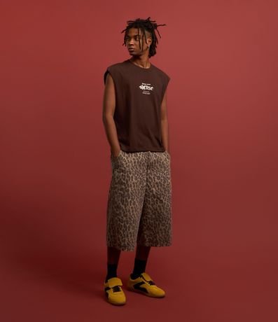 Ref: Bermuda masculina confeccionada em sarja mais sustentável, cós fixo com passantes, fechamento tradicional e bolsos. Peça no modelo baggy com estampa de animal print.
