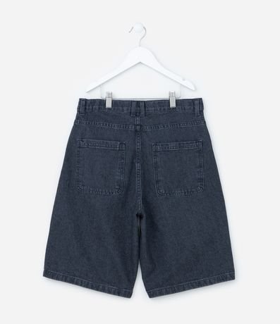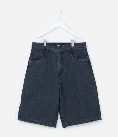 Ref: Bermuda infantil em jeans estonado com cós passante, fechamento por botões e zíper, bolsos. Peça no modelo baggy.