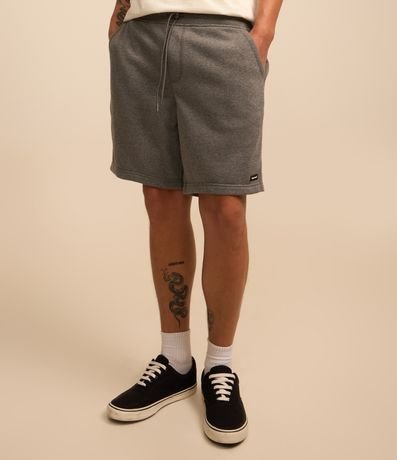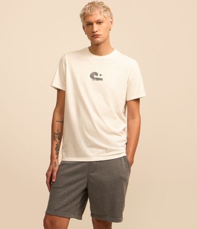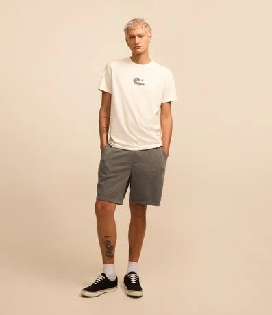 Bermuda masculina confeccionada em material mais sustentável, cós elástico, cordão para ajustes, sem abertura e com bolsos.