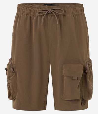 Bermuda Cargo com Cós Elástico e Bolsos Táticos