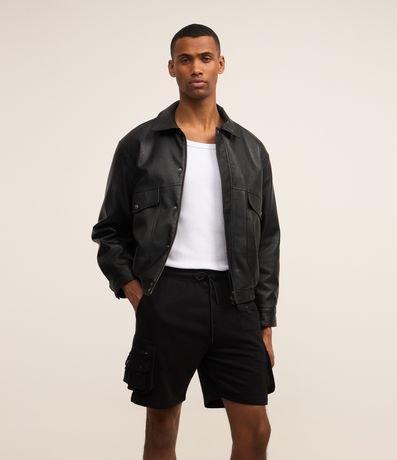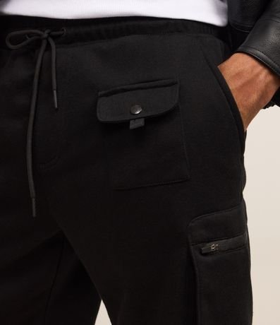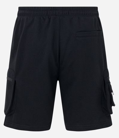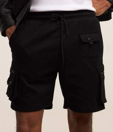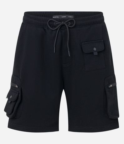 Ref: Bermuda masculina de modelo cargo, confeccionada em moletom com forro em fleece, possui amarração na cintura e bolsos táticos.