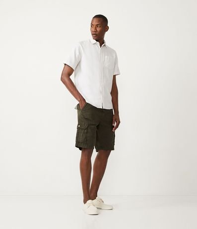Bermuda masculina fit cargo, sem estampa, em sarja. Os bolsos variados, característicos do modelo, adicionam um ar utilitário e estiloso. Despojada, a peça é uma ótima opção para compor looks casuais.