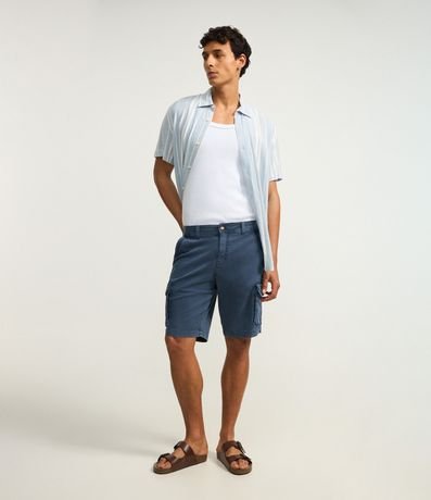 Ref: Bermuda masculina modelo cargo, sem estampa, em sarja com elastano. Os bolsos variados, característicos do modelo, adicionam um ar utilitário e estiloso. Despojada, a peça é uma ótima opção para compor looks casuais.