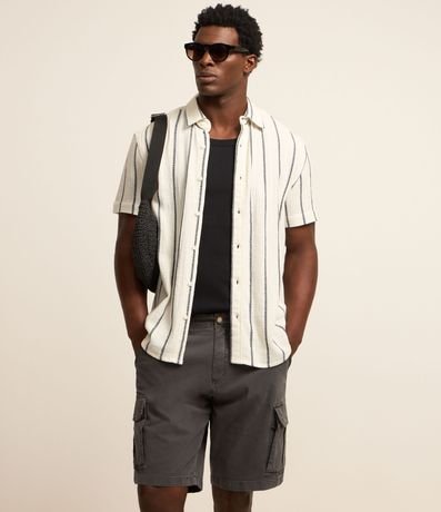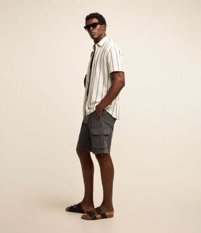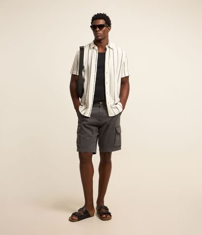 Ref: Bermuda masculina modelo cargo, sem estampa, em sarja com elastano. Os bolsos variados, característicos do modelo, adicionam um ar utilitário e estiloso. Despojada, a peça é uma ótima opção para compor looks casuais.