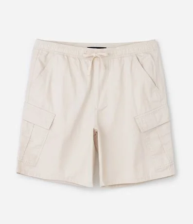 Ref: Bermuda Cargo em sarja com cós elástico e 6 bolsos.