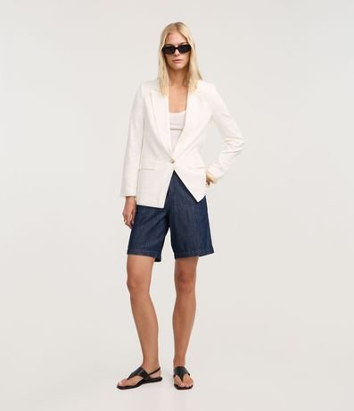 Bermuda regular de cintura alta, confeccionada em jeans, com cós alfaiatado. passantes no cós e fechamento tradicional. Este produto possui algodão certificado em sua composição, sendo ambientalmente mais responsável.