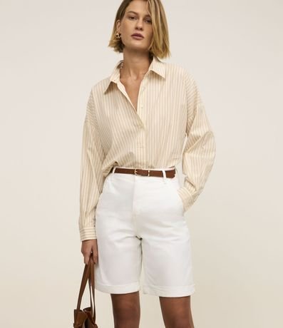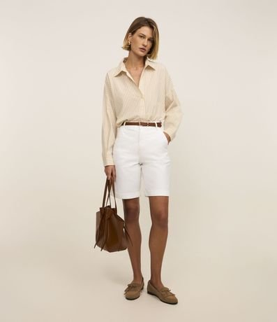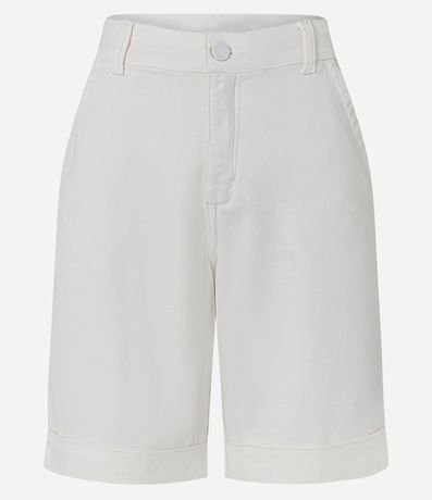 Ref: Bermuda em sarja com cintura alta, passantes no cós e bolsos.