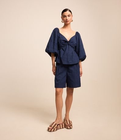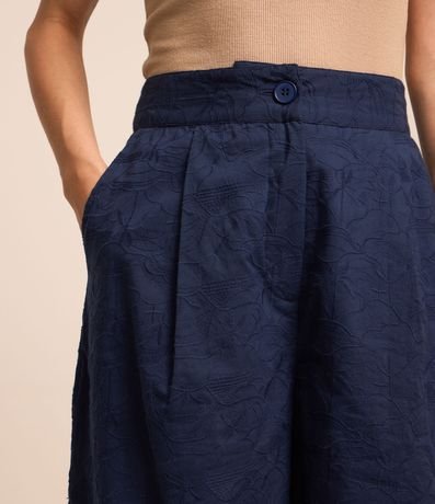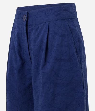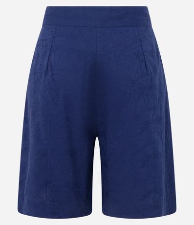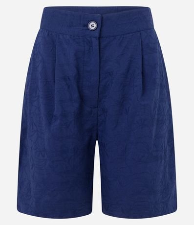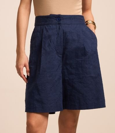 Bermuda Cintura Alta em Tricoline com Estampa Bordada e Pregas Frontais