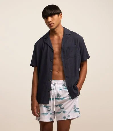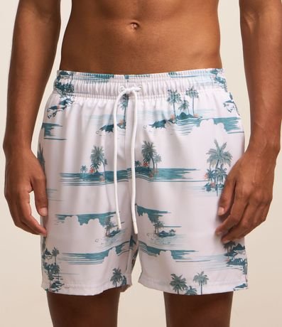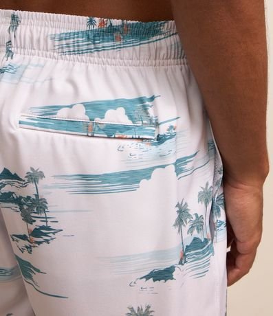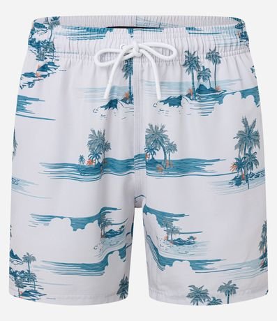 Ref: Bermuda masculina, cós com elástico e cordão para ajustes, estampa de mini ilhas.