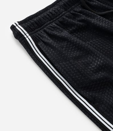 Ref: Bermuda esportiva masculina confeccionada em tecnologia dry. Possui cós elástico, com cordão ajustável, heat print e listras nas laterais.