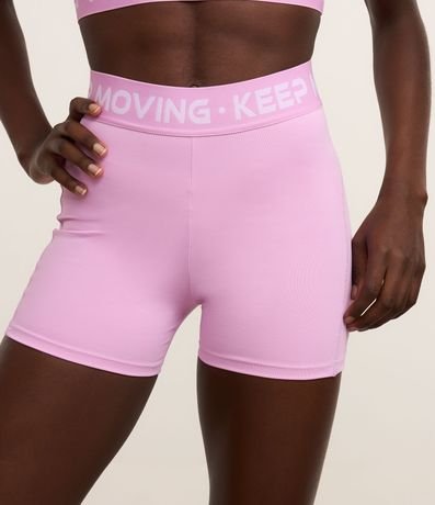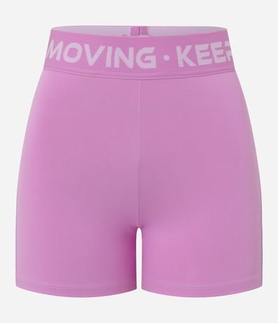 Short esportivo coladinho confeccionado em microfibra. A bermuda tem elástico estampado no cós com palavras "Keep Mooving".