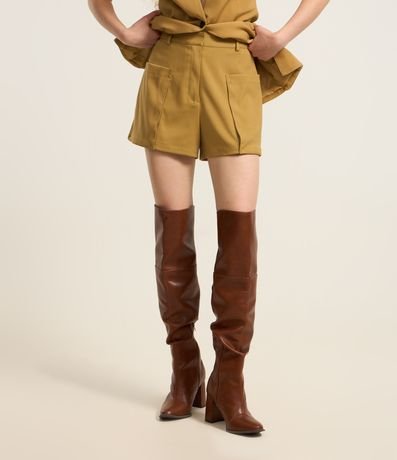 Ref: Bermuda curta, confeccionada em sarja com viscose certificada mais sustentável e bolso fole.