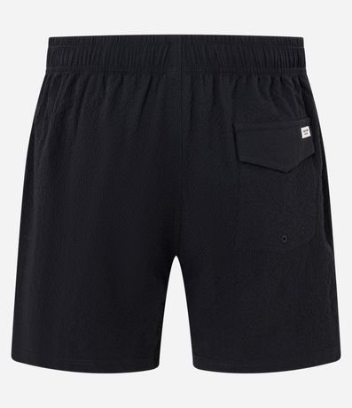 Bermuda de banho básica masculina confeccionada em microfibra. Possui cós elástico, com cordão, ajustável e bolso.