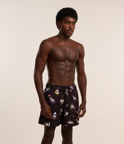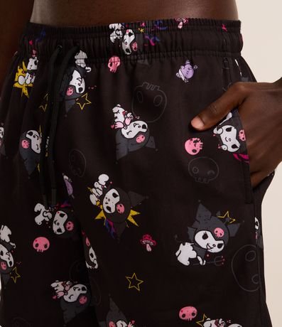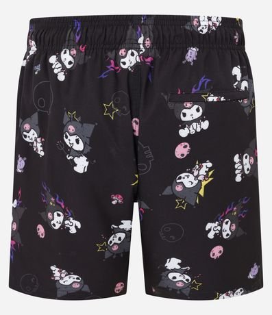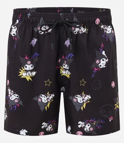 Ref: Bermuda de banho masculina, possui cós elástico com cordão ajustável e estampa do Kuromi Hello Kitty.