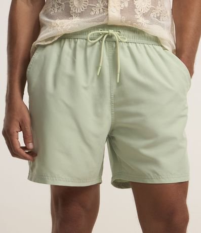 Bermuda de Banho em Microfibra com Cós Elástico e Bolsos