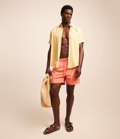 Versátil e descolada, a bermuda de banho com cós elástico e bolsos, é uma peça indispensável no guarda-roupa de verão masculino. Fácil de combinar, o modelo é ideal para promover looks minimalistas e cheios de estilo.
