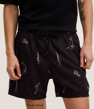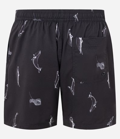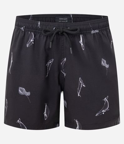 Ref: Bermuda masculina confeccionada em microfibra, no modelo de banho. Possui cós elástico, com cordão, ajustável, bolso e estampa Mini Baleias.