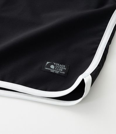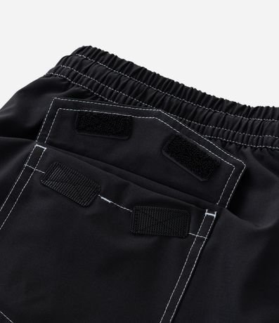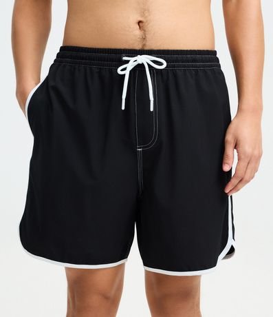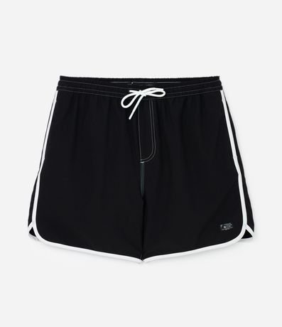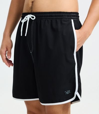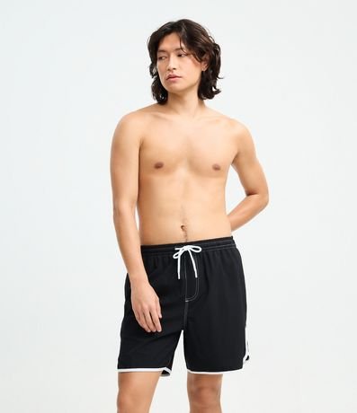 Ref: Bermuda de banho masculina em tecido sintético, possui cós elástico com cordão ajustável, bolsos e listra contrastante.