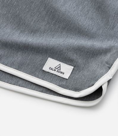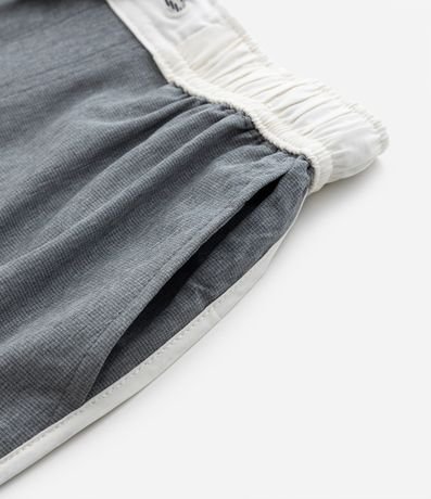 Bermuda infantil confeccionada em microfibra leve com contraste e elástico no cós, bolsos traseiro com zíper, vieses contrastantes nas barras