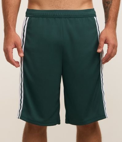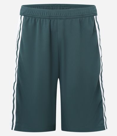 Ref: Bermuda masculina esportiva em tecnologia dry, cós elástico com cordinha e listras alonga laterais.