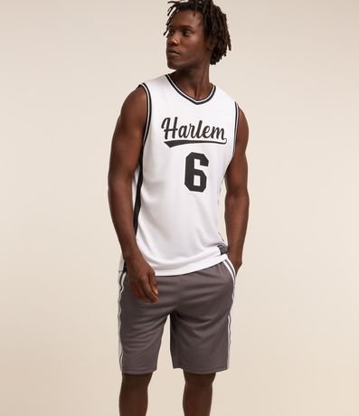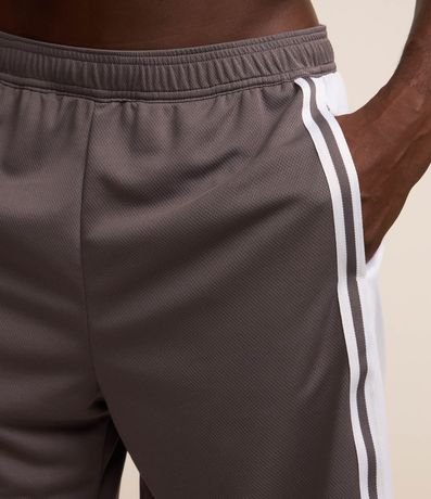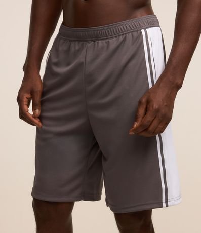 Ref: Bermuda masculina esportiva em tecnologia dry, cós elástico com cordinha e listras alonga laterais.