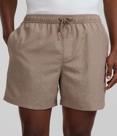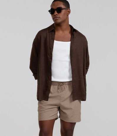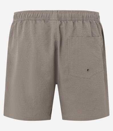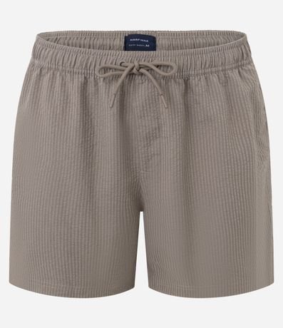 Ref: Bermuda masculina de praia, confeccionada em ana ruga mais sustentável, com textura e amarração na cintura. Sem estampa, possui bolsos laterais e bolso traseiro.