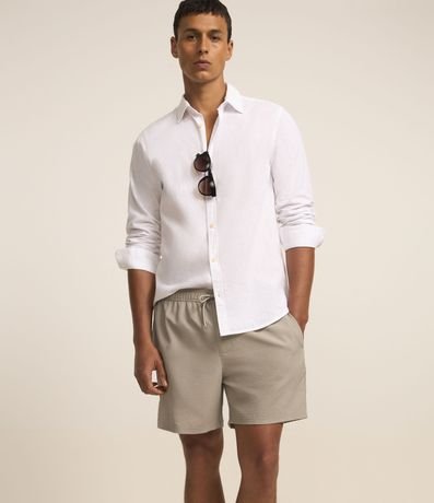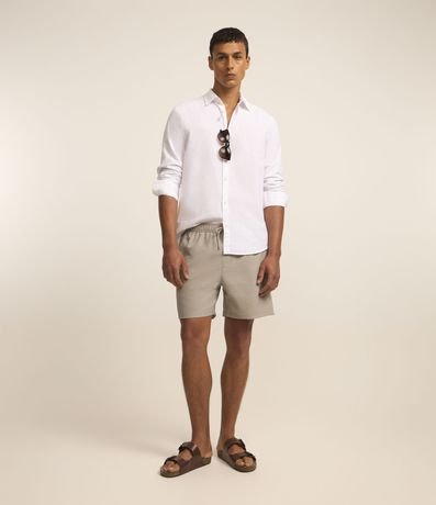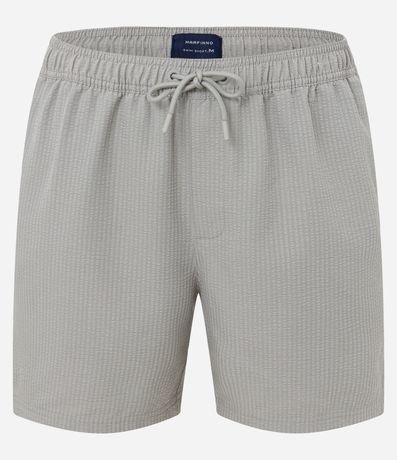 Bermuda masculina de praia, confeccionada em ana ruga mais sustentável, com textura e amarração na cintura. Sem estampa, possui bolsos laterais e bolso traseiro.