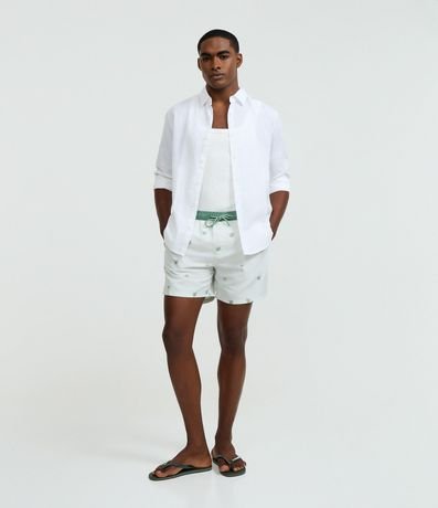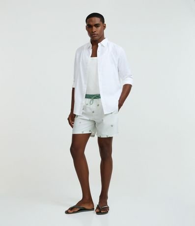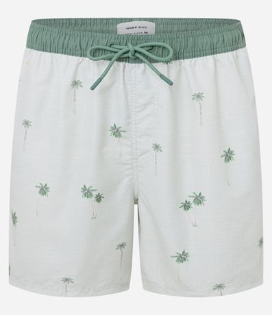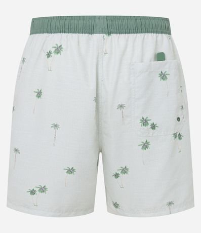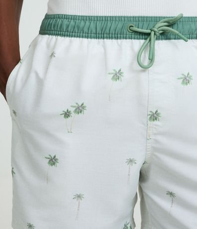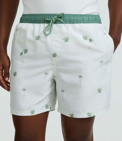 Ref: Bermuda masculina confeccionada em microfibra, cós elástico contrastante, cordão para ajustes, bolso. Peça com textura e estampa de coqueiros.