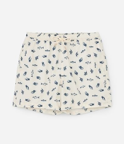 Bermuda de Praia em Microfibra com Estampa de Peixes