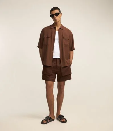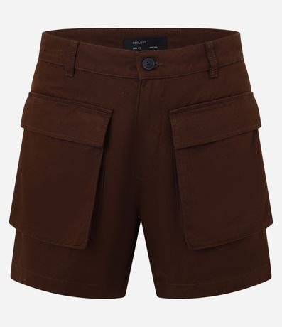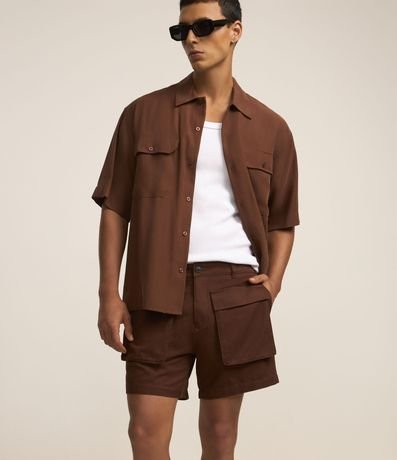 Ref: Bermuda masculina confeccionada em material mais sustentável, cós com passante, fechamento tradicional, bolsos cargo frontais.