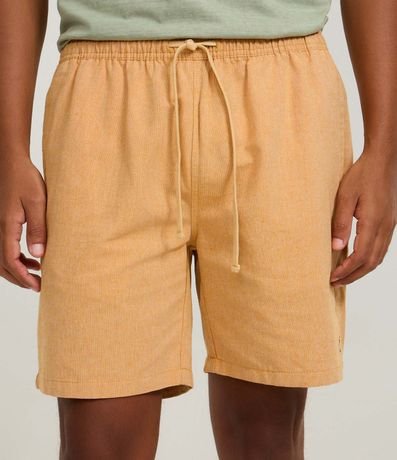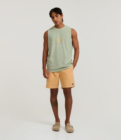 Ref: Bermuda masculina confeccionada em algodão mais sustentável com boas práticas ambientais, possui cós elástico com cordão, bolso e etiqueta aplicada.